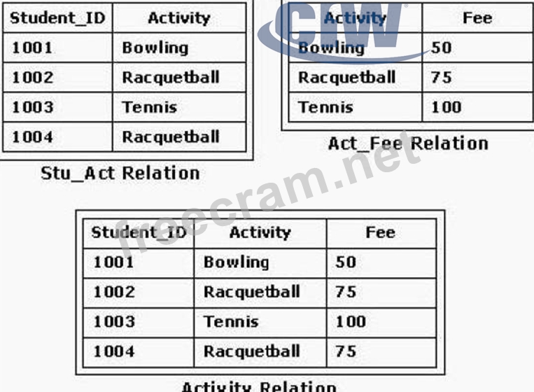 Question 23: Consider the relations shown in the exhibit. Which of the fo...