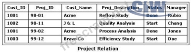 Question 20: The exhibit shows a relation for a company projects. Which c...