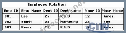 Question 81: Consider the relation shown in the exhibit. Which of the fol...