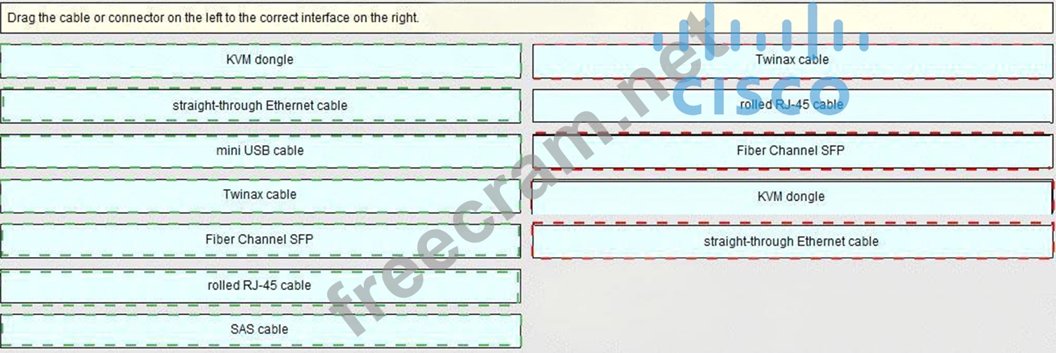 Question 45: Drag the cable or connector on the left to the correct inter...