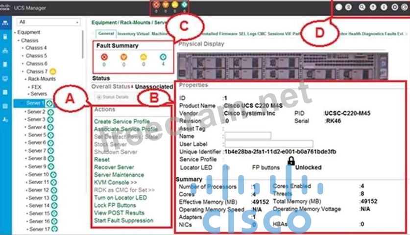 Question 81: To confirm the installation of a B-Series Server, which GUI ...