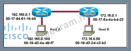 Section: Operation of IP Data Networks Explanation: For the initial communication, Host A will send a broadcast ARP (all F's) to determine the correct address to use to reach the destination. ARP sends an Ethernet frame called an ARP request to every host on the shared link-layer legmen. The Ethernet header includes the source host MAC address and a destination address of all Fs representing a broadcast frame. The ARP request contains the sender's MAC and IP address and the target (destination) IP address. The target's MAC address is set to all 0s. ARP Request Reference: http://www.technicalhowto.com/protocols/arp/arp.html