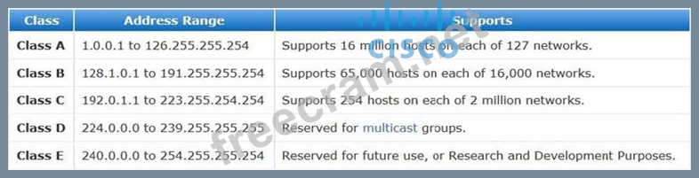 255.255.255.0 and the range of valid addresses is 192.0.0.0 - 223.255.255.255. The IP address 127.0.0.1 is a Class A address, but it comes from a reserved portion that cannot be assigned. The range 127.0.0.1 - 127.255.255.255 is used for diagnostics, and although any address in the range will work as a diagnostic address, 127.0.0.1 is known as the loopback address. If you can ping this address, or any address in the 127.0.0.1 - 127.255.255.255 range, then the NIC is working and TCP/IP is installed. The Class A default mask is 255.0.0.0 and the range of valid addresses is 1.0.0.0 - 127.255.255.255, with the exception of the range