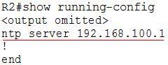 R1 router clock is synchronized with ISP router. R2 is supposed to receive NTP updates from R1. But you observe that R2 clock is not synchronized with R1. What is the reason R2 is not receiving NTP updates from R1?