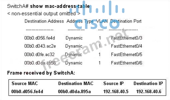 Question 30: Refer to the exhibit. SwitchA receives the frame with the ad...