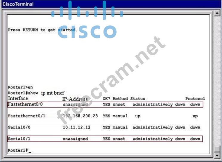 Question 54: (Exhibit) What interfaces on Router1 have not had any config...