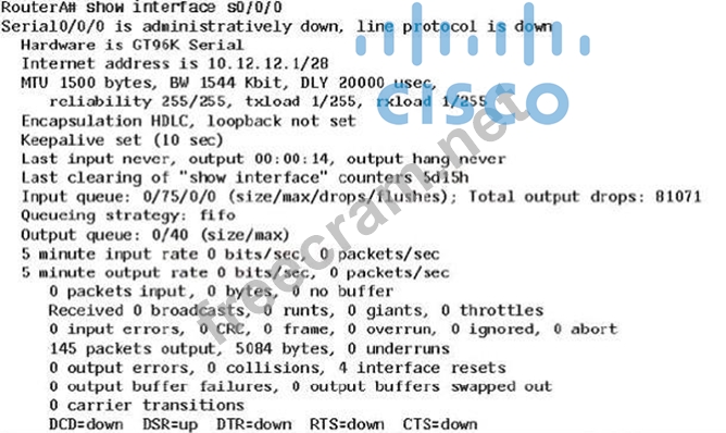 Refer to the exhibit. Which statement is correct regarding the results shown for the show interface s0/0/0 command?