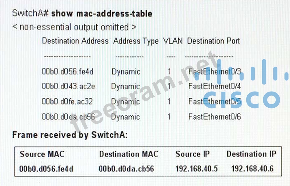 Refer to the exhibit. Which option describes how SwitchA will handle the frame just received?