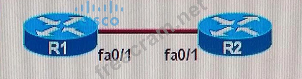 The two routers have had their startup configurations cleared and have been restarted. At a minimum, which option below must the administrator do to enable CDP to exchange information between R1 and R2?