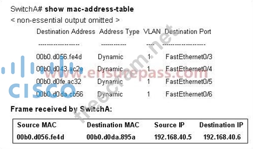 1 commentQuestion 26: Refer to the exhibit. SwitchA receives the frame with the ad...