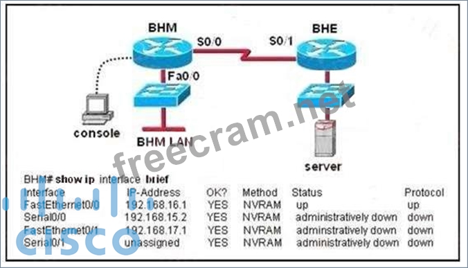 Examine the network diagram and router output shown in the exhibit. Users on the BHM LAN are unable to access the server attached to the BHE router. What two things should be done to fix this problem?
