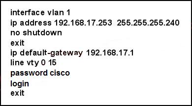 A network administrator has configured a Catalyst 2950 switch for remote management by pasting into the console the configuration commands that are shown in the exhibit. However, a Telnet session cannot be successfully established from a remote host. What should be done to fix this problem?