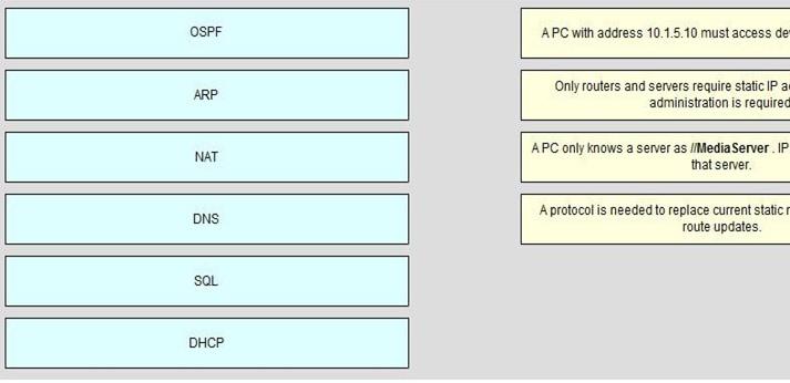 Move the protocol or service on the left to a situation on the right where it would be used. (Not all options are used).