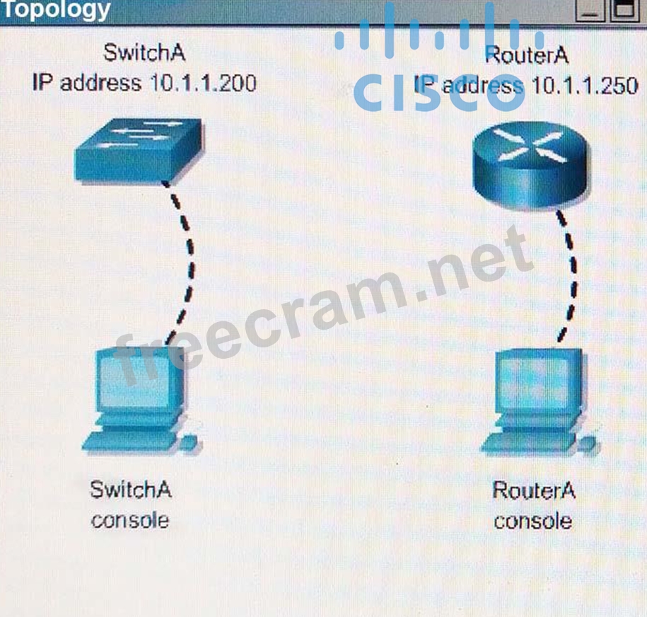 You will connect to RouterA and SwilchA via the console devices that are attached to each.