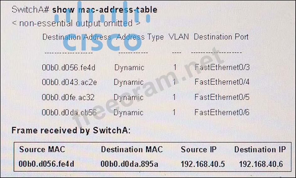Which option describes how SwitchA will handle the frame just received?