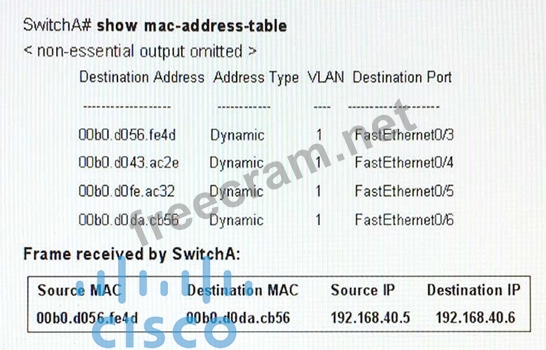 Refer to the exhibit. Which option describes how SwitchA will handle the frame just received?