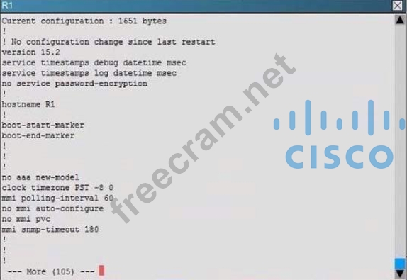 Question 285: (Exhibit) Refer to the exhibit. Router R1 produced this part...