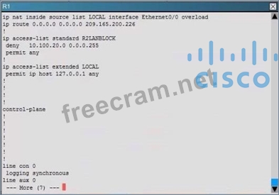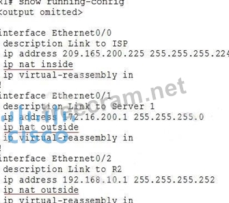Users complain that they are unable to reach Internet sites. You are troubleshooting Internet connectivity problem at main office. Which statement correctly identifies the problem on Router R1?