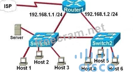 Question 51: Refer to the exhibit. Host A can communicate with Host B but...