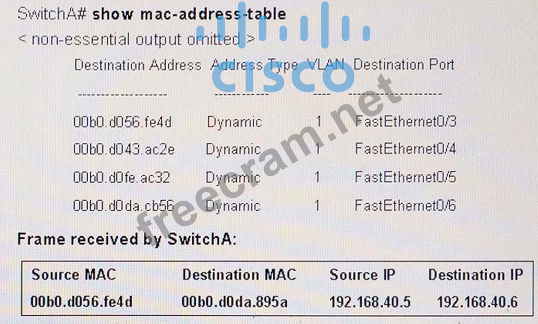 Question 297: A switch receives a frame on one of its ports. There is no e...