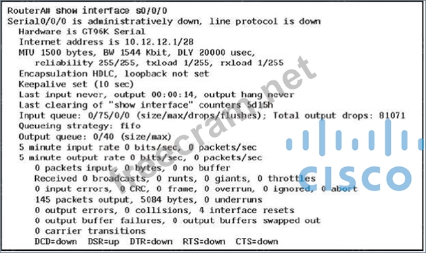 Refer to the exhibit. Which statement is correct regarding the results shown for the show interface s0/0/0 command?