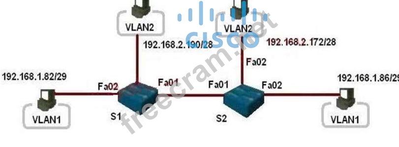Question 213: Refer to the exhibit. A frame on VLAN 1 on switch S1 is sent...
