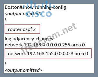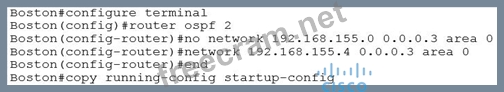 First, remember that the current OSPF Process ID is 2 because we will need it for later configuration. Next notice that in the second "network" command the network and wildcard mask are 192.168.155.0 and