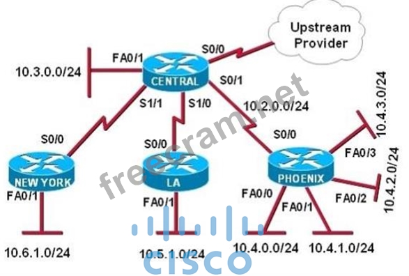 Refer to the exhibit. The ABC Company has the internetwork in the exhibit. The administrator would like to reduce the size of the routing table on the Central router. Which partial routing table entry in the Central router represents a route summary that represents the LANs in Phoenix but no additional subnets?