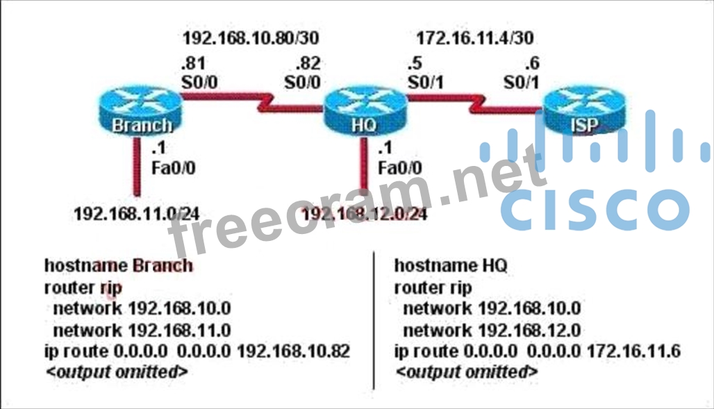 Refer to the topology and partial router configurations shown in the exhibit. The network is fully operational and all routing tables are converged. Which route will appear in the output of the show ip route command issued on the Branch router?