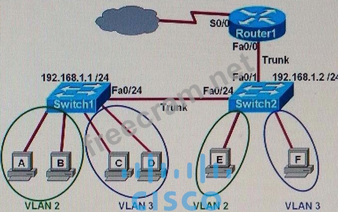 Question 33: (Exhibit) Refer to the exhibit. Which switch in this configu...