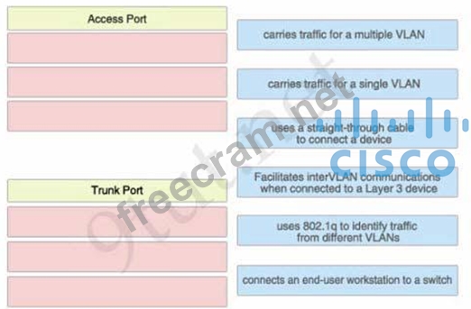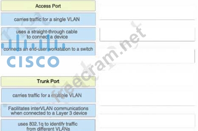 You work as a network administrator for your corporation, your boss is interested in switch ports. Match the options to the appropriate switch ports