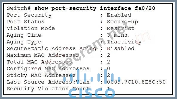 Shutdown-This mode is the default violation mode; when in this mode, the switch will automatically