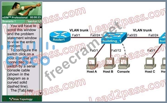The question states we can't access the router so we can only get required information from switch building_1. Click on the PC connected with switch building_1 (through a console line) to access switch building_1s CLI. On this switch use the show running-config command: