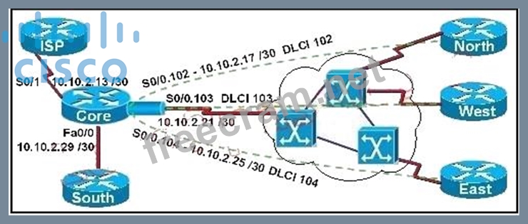 Explanation/Reference: Explanation: There are two ways to inject a default route into a normal area.1. If the ASBR already has the default route in its routing table, you can advertise theexisting 0.0.0.0/0 into the OSPF domain with the default- information originate router configuration command.2. If the ASBR doesn't have a default route, you can add the keyword always to the default-information originate command (default-information originate always).This command will advertise a default route into the OSPF domain, regardless of whether it has a route to 0.0.0.0. Another benefit of adding always keyword is that it can add stability to the internetwork. For example, if the ASBR is learning a default route from another routing domain such as RIP and this route is flapping, then without the always keyword, each time the route flaps, the ASBR will send a new Type 5 LSA into the OSPF domain causing some instability inside the OSPF domain. With the always keyword, the ASBR will advertise the default inside the OSPF domain always, In the example shown here, only choice C is correct as the wildcard mask correctly specifies the 10.10.2.16 0.0.0.15 networks, which include all IP addresses in the 10.10.2.16-10.10.2.31 range. In this question we were told that the ISP link should NOT be configured for OSPF, making choice A incorrect. http://www.cisco.com/en/US/tech/tk365/ technologies_configuration_example09186a00801ec9f0.s html