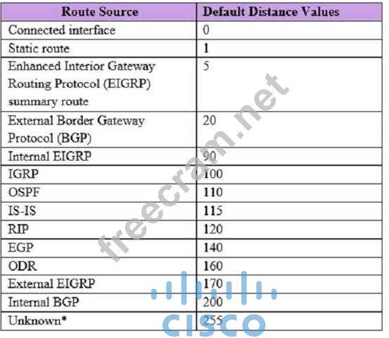 Note: The smaller the administrative distance value, the more reliable the protocol. For example, if a router receives a route to a certain network from both Open Shortest Path First (OSPF) (default administrative distance -110) and Interior Gateway Routing Protocol (IGRP) (default administrative distance -100), the router chooses IGRP because IGRP is more reliable.