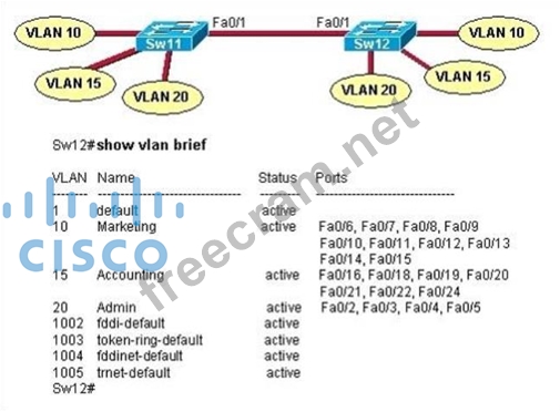 Refer to the exhibit. A technician has configured the FastEthernet0/1 interface on Sw11 as an access link in VLAN 1. Based on the output from the show vlan brief command issued on Sw12, what will be the result of making this change on Sw11?