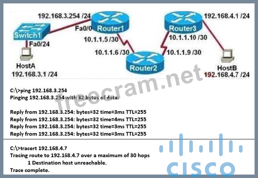 Question 61: Refer to the exhibit. HostA cannot ping HostB. Assuming rout...