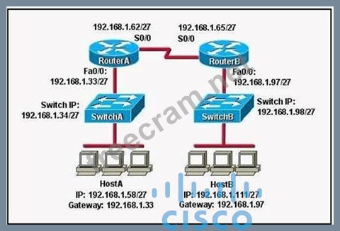 Question 61: Refer to the exhibit. HostA cannot ping HostB. Assuming rout...