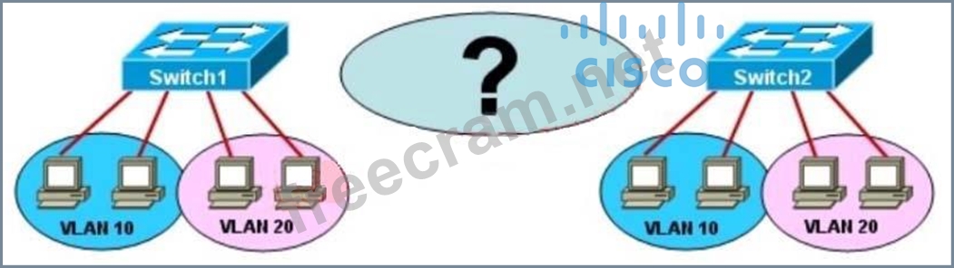 Refer to the exhibit. How should Switch1 and Switch2 be connected in order to allow full communication between all of the hosts?