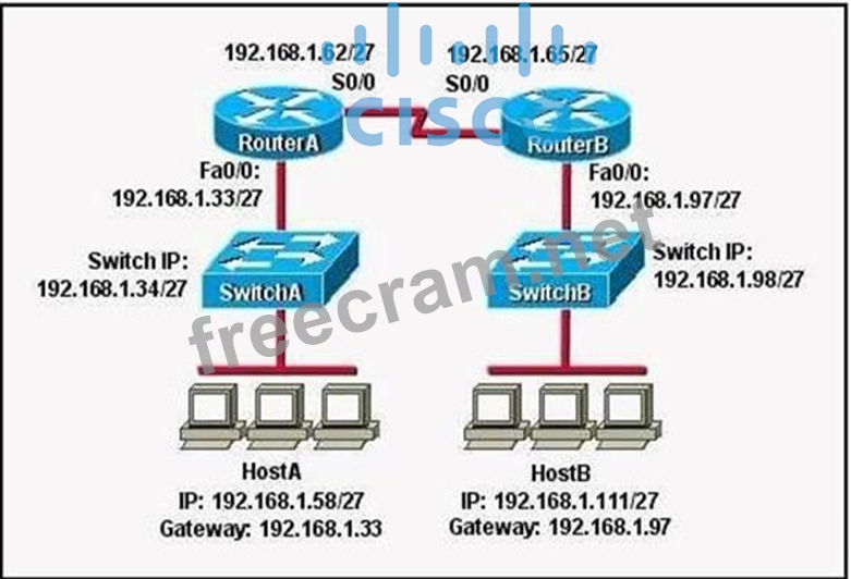 Question 319: Refer to the exhibit. HostA cannot ping HostB. Assuming rout...