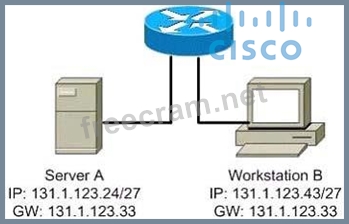 Refer to the exhibit. The user at Workstation B reports that Server A cannot be reached.
