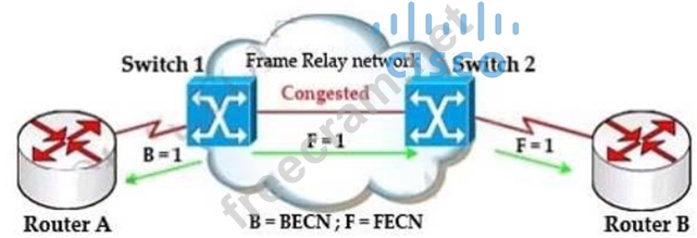 network is congesting so it also sends frames back to Router A with BECN bit set to 1 to inform that path