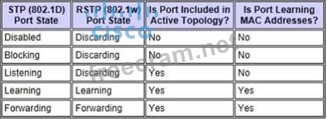 Question 306: Which RPVST+ port state is excluded from all STP operations?...