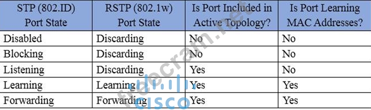 Question 306: Which RPVST+ port state is excluded from all STP operations?...