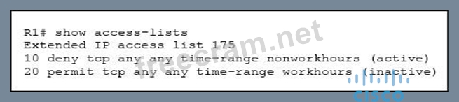 While you troubleshoot a connectivity issue to a PC behind R1, you enter the show access-lists command to generate this output.