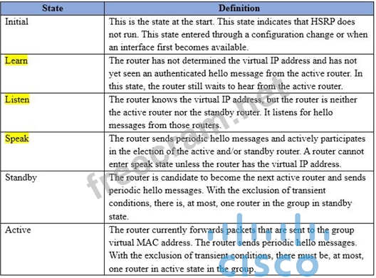 Question 317: Which four options are the HSRP states for a router? (Choose...