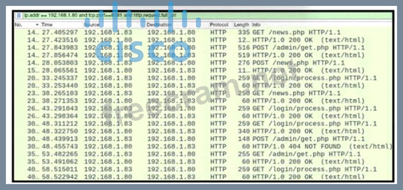 Question 84: Refer to the exhibit. (Exhibit) What is the potential threat...