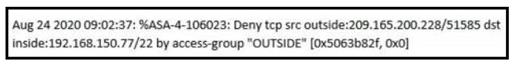 The alert from the Cisco ASA device and the numerous activity logs are examples of circumstantial evidence. Circumstantial evidence is evidence that relies on an inference or deduction to connect it to a conclusion of fact, such as a security incident or an attack. Circumstantial evidence does not directly prove the fact in question, but rather suggests or implies it. In this case, the alert and the logs indicate that a TCP connection attempt was denied by an access group, but they do not directly prove that an attack occurred or who was behind it. There could be other explanations for the denied connection, such as a misconfiguration, a network error, or a legitimate request. Therefore, this type of evidence is circumstantial and requires further investigation and analysis to confirm or rule out the possibility of an attack. Reference:= Circumstantial evidence - Wikipedia; Circumstantial Evidence - Definition, Examples, Cases, Processes; Understanding Cisco Cybersecurity Operations Fundamentals (CBROPS) - Cisco, page 92.