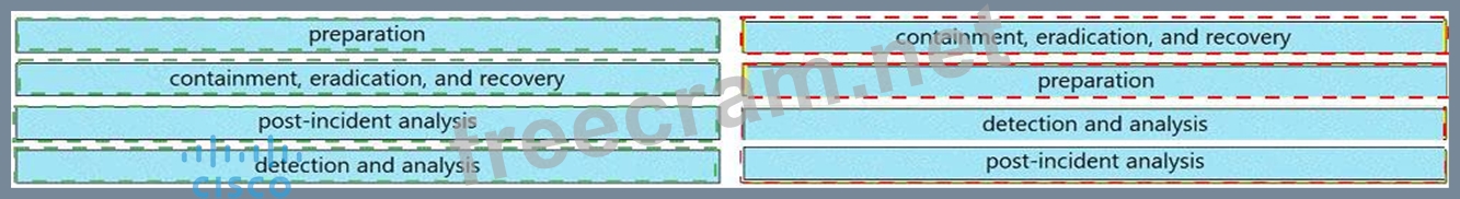 Drag and drop the elements from the left into the correct order for incident handling on the right.