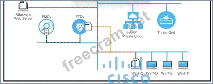 A workstation downloads a malicious docx file from the Internet and a copy is sent to FTDv. The FTDv sends the file hash to FMC and the tile event is recorded what would have occurred with stronger data visibility.